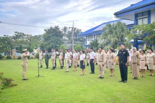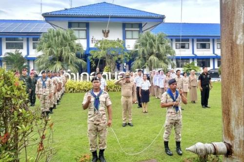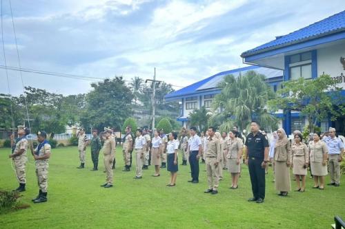 สำนักงานพัฒนาชุมชนอำเภอหนองจิก โดย นางกาญจนา น้าวประจุล พัฒนาการอำเภอหนองจิก พร้อมด้วยเจ้าหน้าที่พัฒนาชุมชน ร่วมกิจกรรมปกป้องและเทิดทูนสถาบัน (เคารพธงชาติ)
