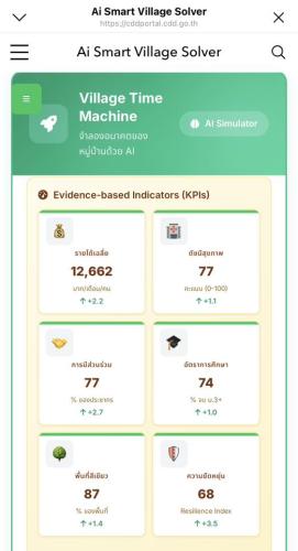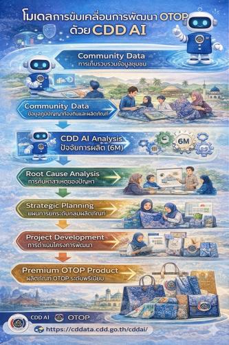 โมเดลนี้ออกแบบตามแนวคิดของ กรมการพัฒนาชุมชน และการพัฒนาสินค้าชุมชนภายใต้ OTOP โดยผสมกับเครื่องมือ AI Smart Village Solver + CDD AI เป้าหมาย